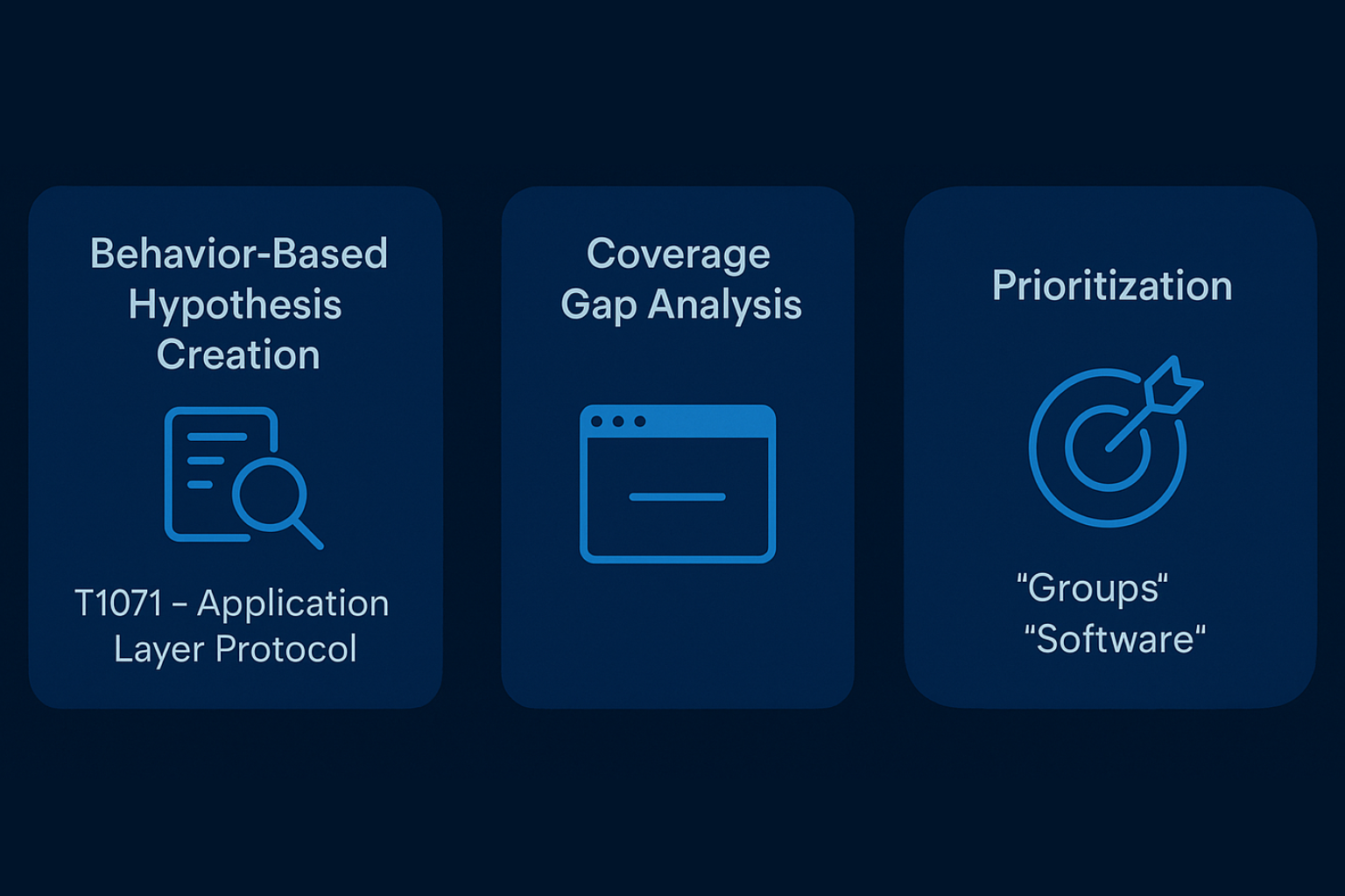 - Behavior-Based Hypothesis Creation: Hunters can start with a specific ATT&CK technique, such as T1071 – Application Layer Protocol, and develop KQL or Sigma queries to search logs for suspicious network communication.