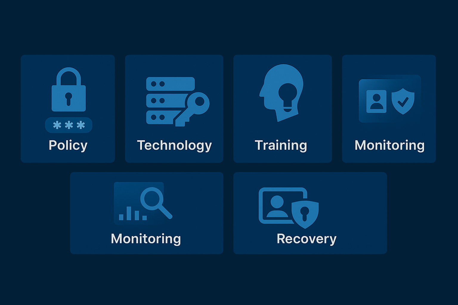 - Technology: Enable password filters (on-prem AD / Entra), deploy an enterprise password manager, and enforce MFA.